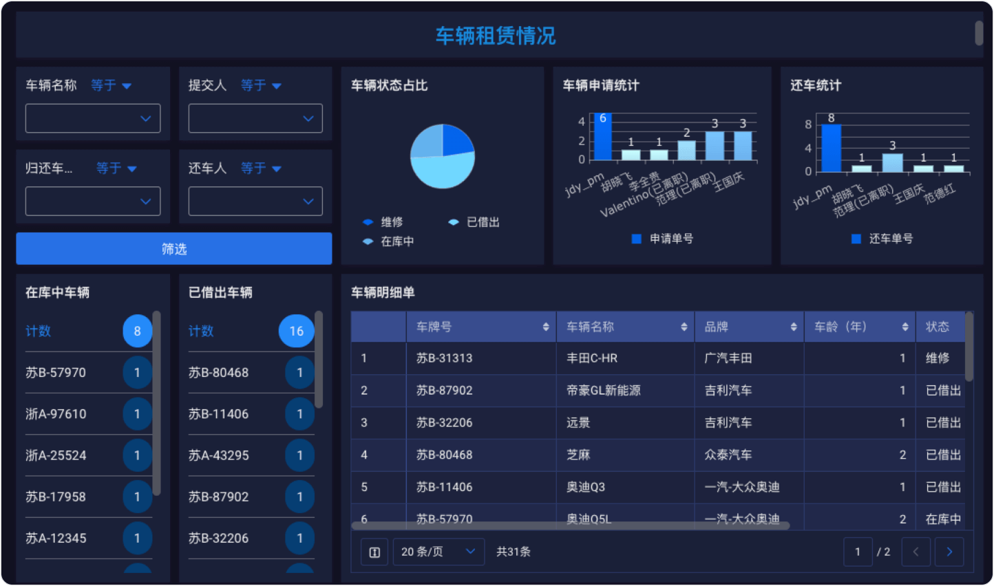 |企业级零代码业务系统搭建平台实时掌握车辆和驾驶员出车状态